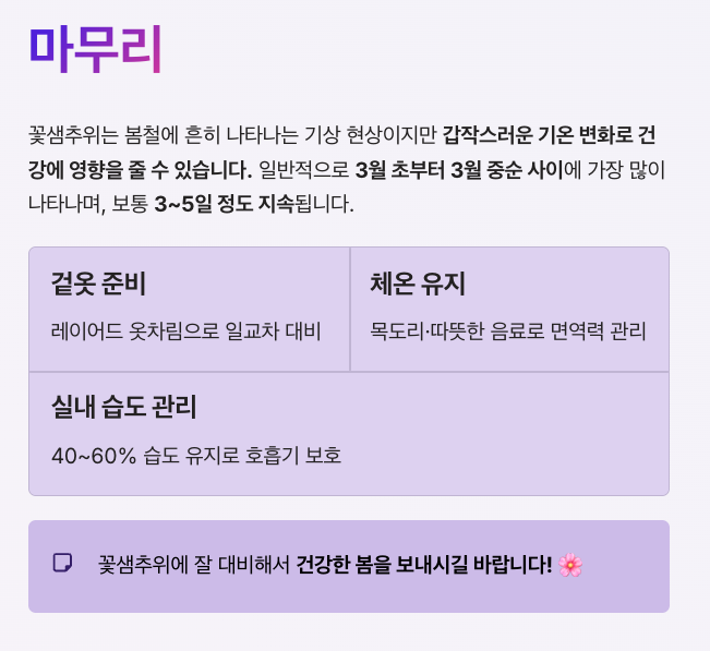 꽃샘추위 기간에는 건강 관리도 중요합니다.