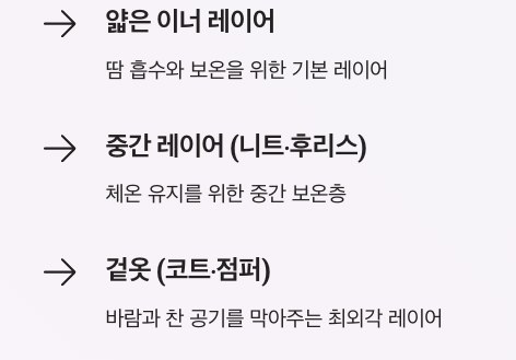 특히 아침 출근 시간에는 기온이 낮기 때문에 레이어드 옷차림이 도움이 됩니다.