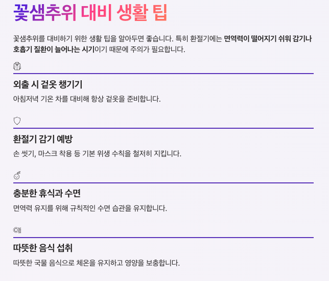 꽃샘추위를 대비하기 위한 생활 팁도 알아두면 좋습니다.