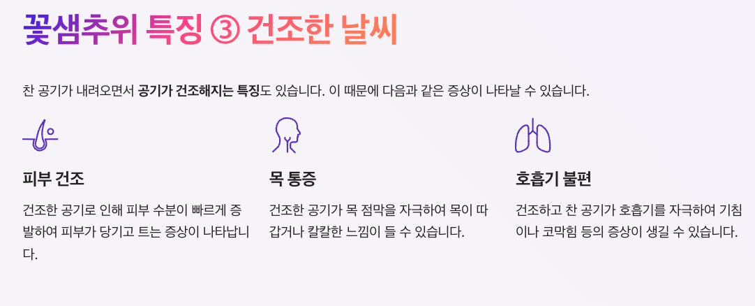 꽃샘추위는 봄철에 흔히 나타나는 기상 현상이지만 갑작스러운 기온 변화로 건강에 영향을 줄 수 있습니다.