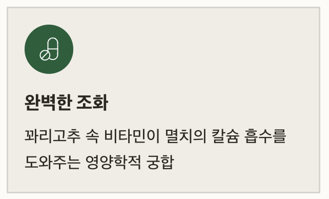 게다가 꽈리고추 속 비타민 성분이 멸치의 칼슘 흡수를 도와주는 영양학적으로도 아주 훌륭한 구성이라는 사실, 알고 계셨나요?