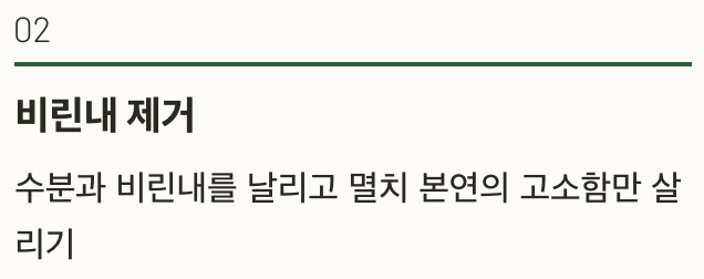 - 수분과 비린내를 날리고 멸치 본연의 고소함만 살리기