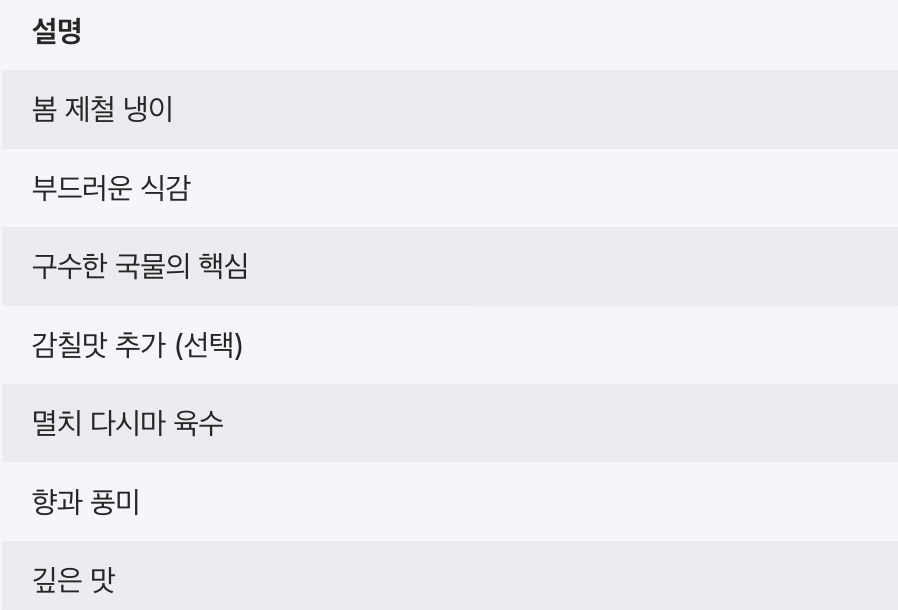따뜻한 국 한 그릇으로 봄의 향기를 식탁에서 느껴보시길 바랍니다.