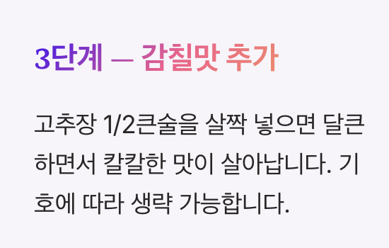 | 고추장 약간 추가 | 감칠맛 증가 |