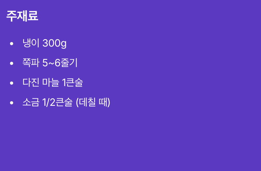 다음은 2~3인 기준으로 준비하면 좋은 재료입니다.