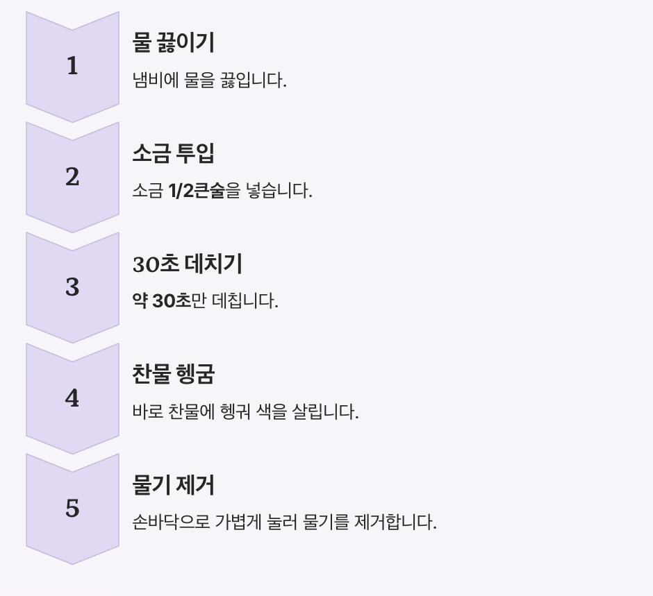 이때 비틀어 짜지 말고 손바닥으로 눌러 물기를 제거하는 것이 중요합니다.