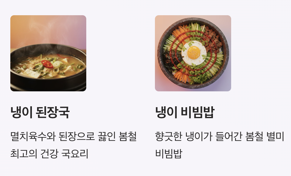 특히 멸치육수와 된장을 넣은 냉이된장국은 봄철 최고의 건강 국요리입니다.