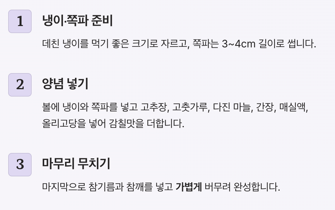 냉이무침의 맛을 살리는 몇 가지 팁을 소개합니다.