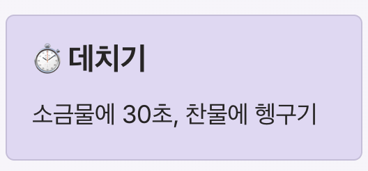 | 소금 (데칠 때) | 1/2큰술 |