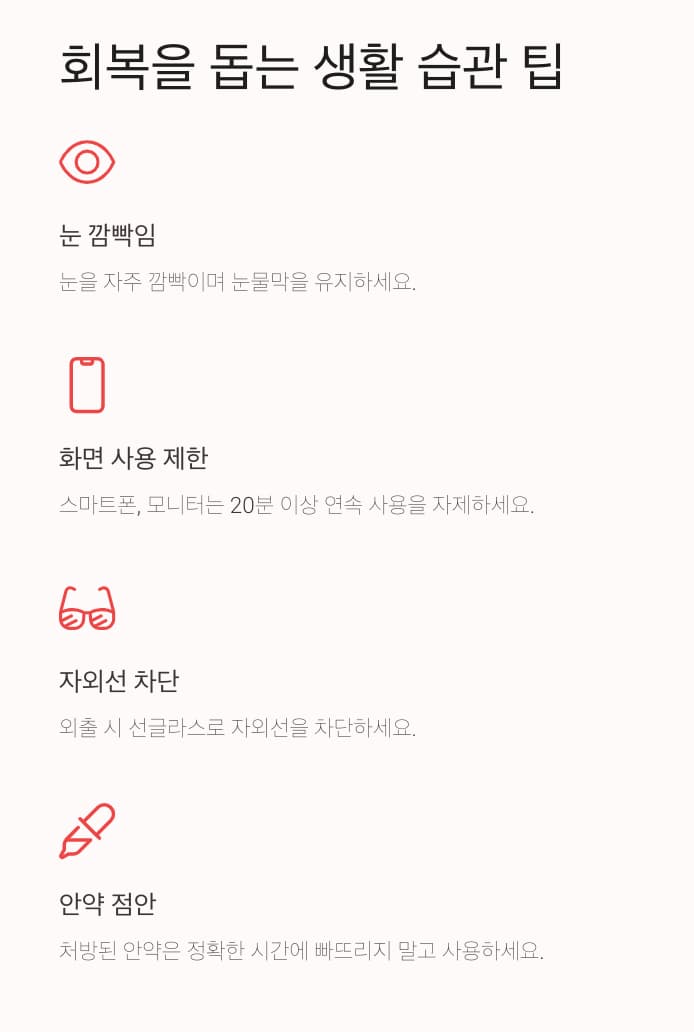 이런 생활 습관만 잘 지켜도 회복 속도는 훨씬 빨라질 수 있습니다.