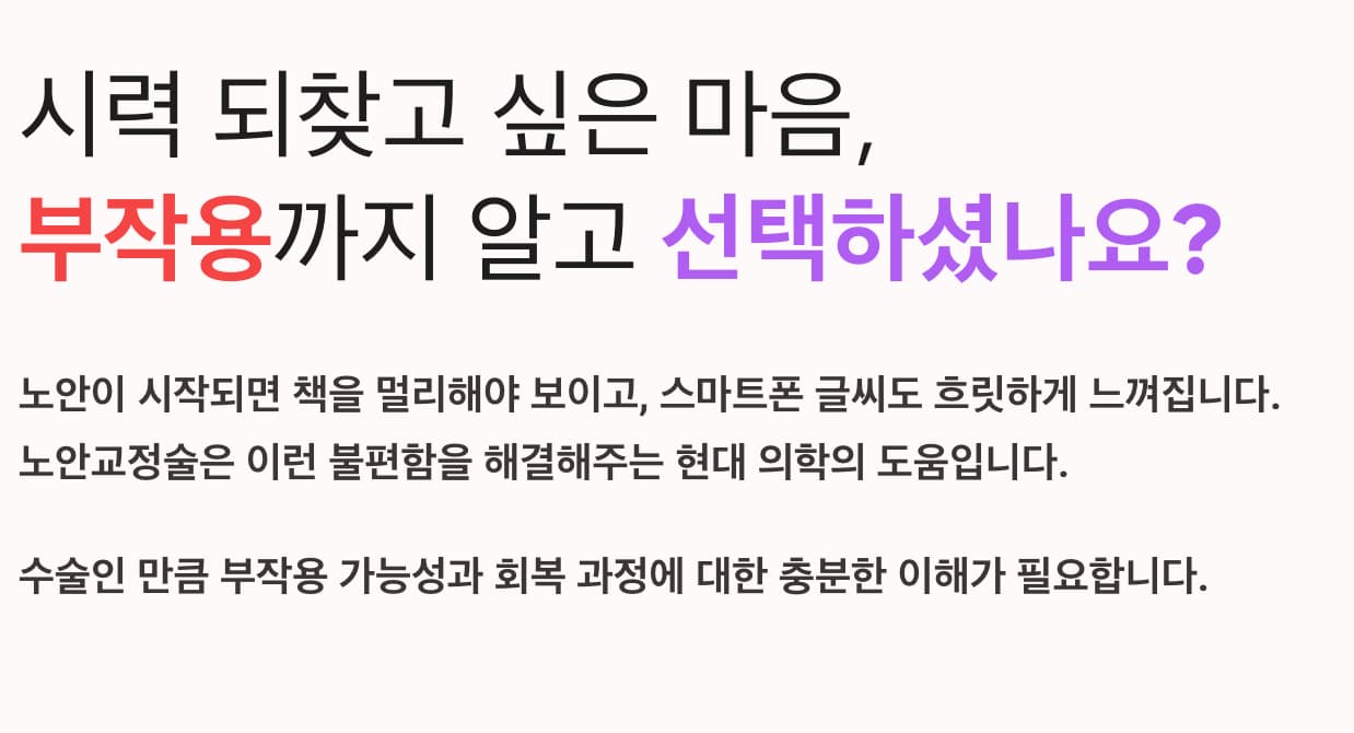 이 글에서는 노안교정술의 부작용 유형부터 회복을 빠르게 돕는 생활 팁까지