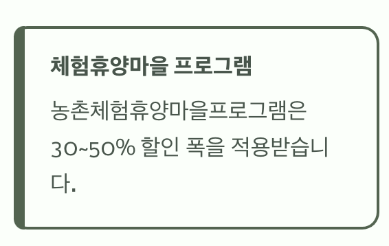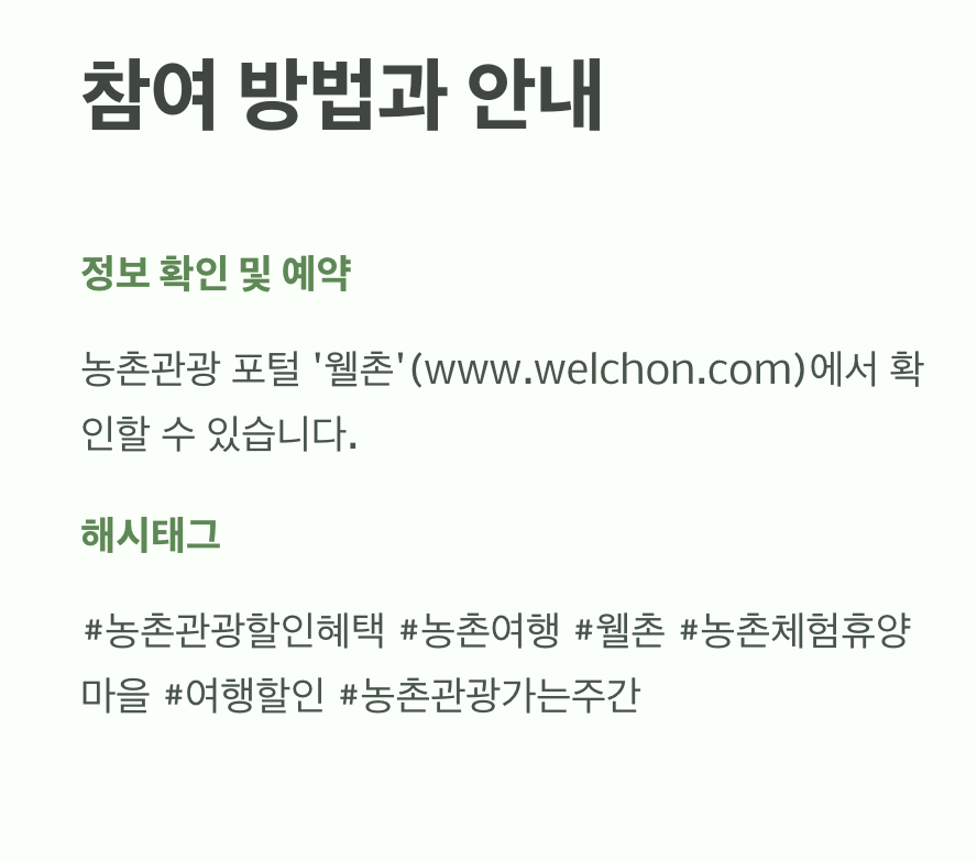 이번 기회를 통해 농촌에서 특별한 추억과 알찬 혜택을 모두 누려보시기 바랍니다.