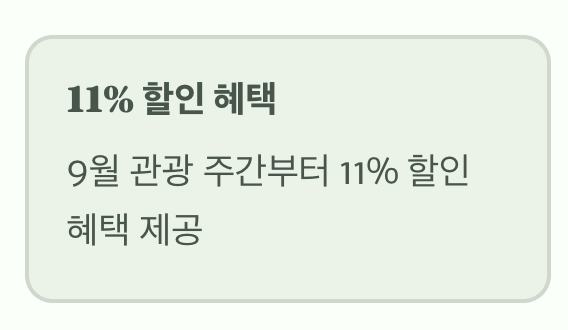 9월 관광 주간부터 11% 할인 혜택이 제공됩니다.