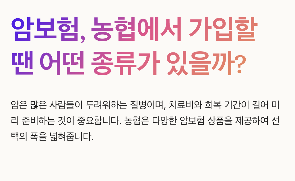 농협 암보험 종류 총정리! 나에게 맞는 상품은 무엇일까?