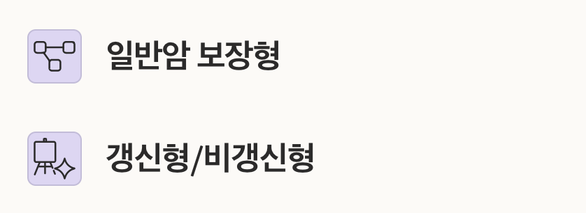 크게 일반암 보장형, 유사암 보장 강화형, 갱신형/비갱신형, 진단비 중심형으로 나눌 수 있으며,