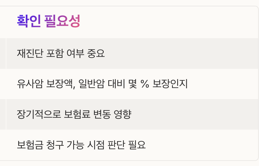 유방암, 전립선암, 갑상선암 등 일부 암은 유사암으로 분류되어 진단비가 절반 이하로 낮게 설정된 경우가 많습니다.
