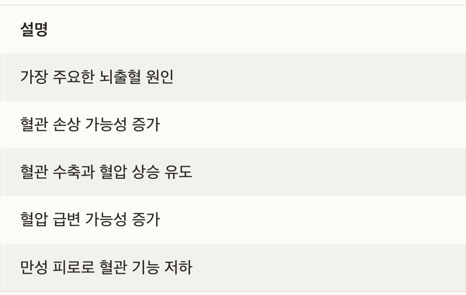 | 고혈압 | 가장 주요한 뇌출혈 원인 |