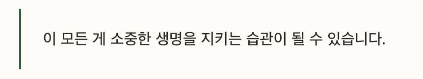 이 모든 게 소중한 생명을 지키는 습관이 될 수 있습니다.