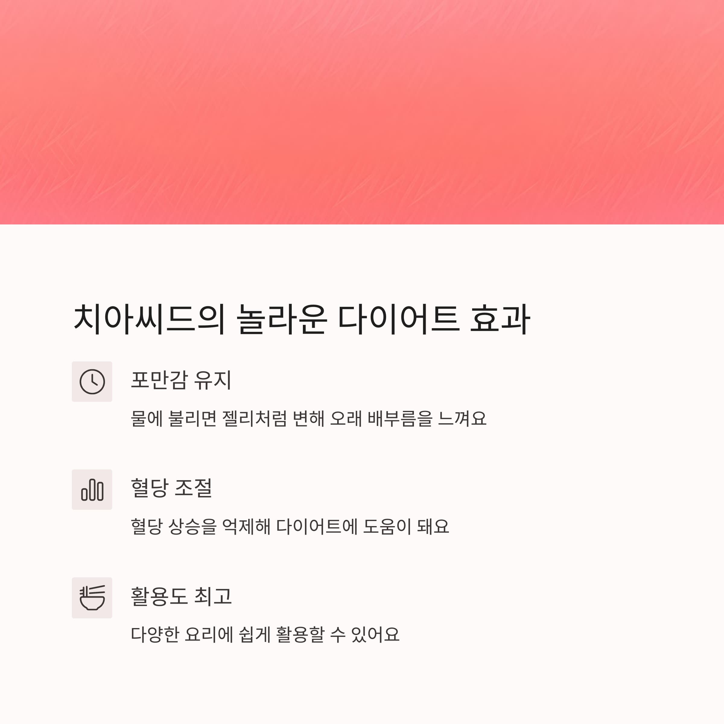 치아씨드는 바로 그런 식단의 핵심 재료가 되어줄 수 있답니다.
