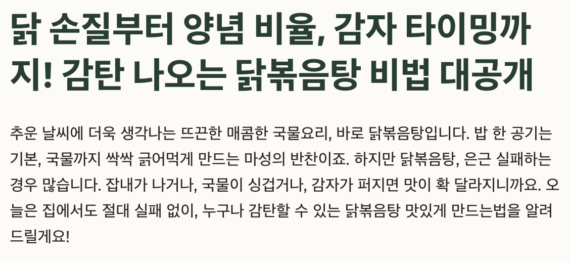 추운 날씨에 더욱 생각나는 뜨끈한 매콤한 국물요리, 바로 닭볶음탕입니다. 밥 한 공기는 기본, 국물까지 싹싹 긁어먹게 만드는 마성의 반찬이죠. 하지만 닭볶음탕, 은근 실패하는 경우 많습니다. 잡내가 나거나, 국물이 싱겁거나, 감자가 퍼지면 맛이 확 달라지니까요. 오늘은 집에서도 절대 실패 없이, 누구나 감탄할 수 있는 닭볶음탕 맛있게 만드는법을 알려드릴게요!