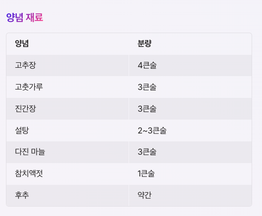 모든 재료를 잘 섞어 매콤달콤한 황금 양념장을 만들어 줍니다.