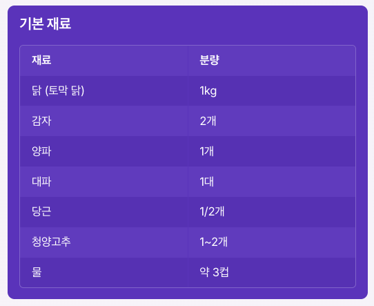 한국인이 좋아하는 대표적인 집밥 메뉴 중 하나가 바로 닭볶음탕(닭도리탕)입니다. 매콤하면서도 깊은 양념이 닭고기와 감자에 스며들어 밥도둑 반찬으로 손꼽히죠. 특히 가족이 함께 먹는 저녁 메뉴로도 인기가 높습니다.