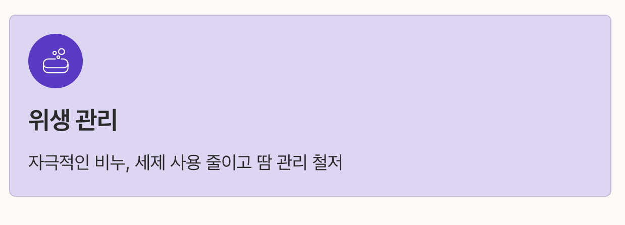 | 위생 관리 | 자극적인 비누, 세제 사용 줄이고 땀 관리 철저 |