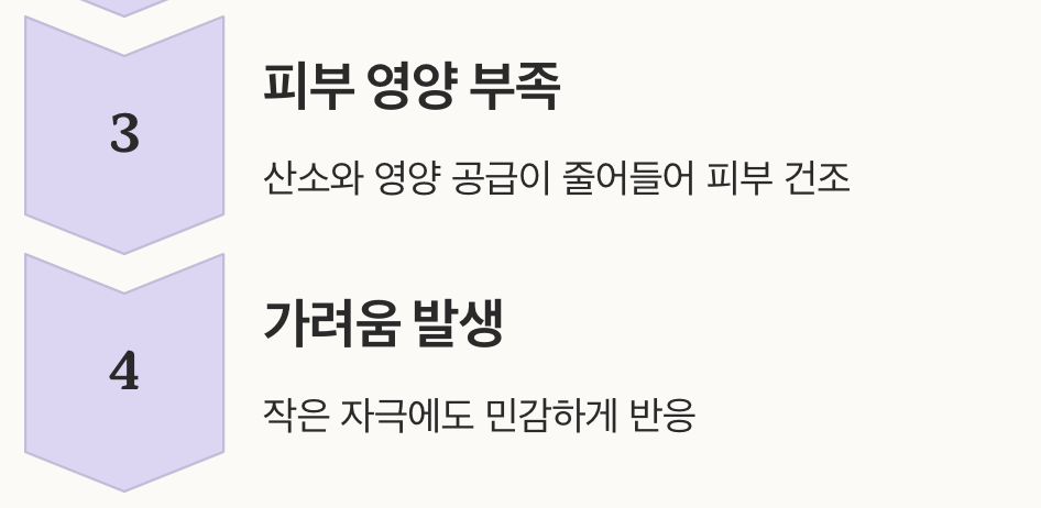 혈당이 높아지면 혈액 순환이 원활하지 않아 피부에 필요한 산소와 영양 공급이 줄어듭니다. 이로 인해 피부가 쉽게 건조해지고, 작은 자극에도 가려움이 생기기 쉽습니다. 특히 당뇨 초기에는 뚜렷한 자각 증상이 없는 경우가 많아 가려움 같은 피부 증상이 간접적인 신호가 될 수 있습니다.