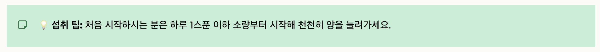 처음 시작할 땐 하루 1스푼 이하 소량 섭취부터 천천히 늘려가는 것이 좋아요.