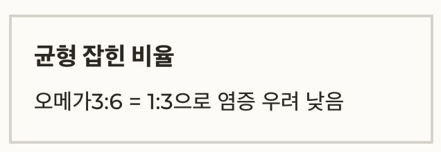 또 오메가6가 과잉되면 염증 유발 우려가 있지만
