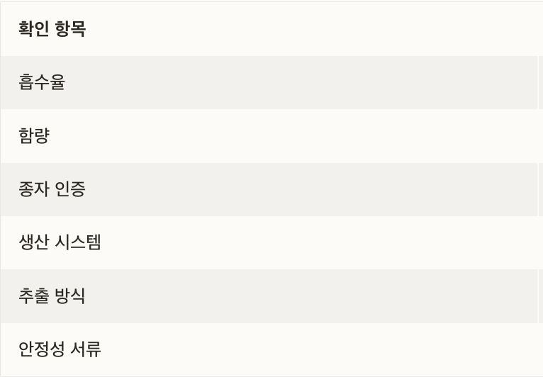 품질 좋은 제품을 고르기 위해 아래 요소를 꼭 확인하세요.