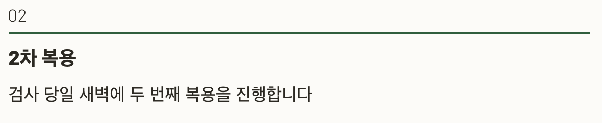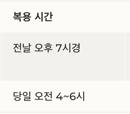 | 복용 시간 | 검사 전날 저녁 7시, 당일 새벽 4~6시 (총 2회) |
