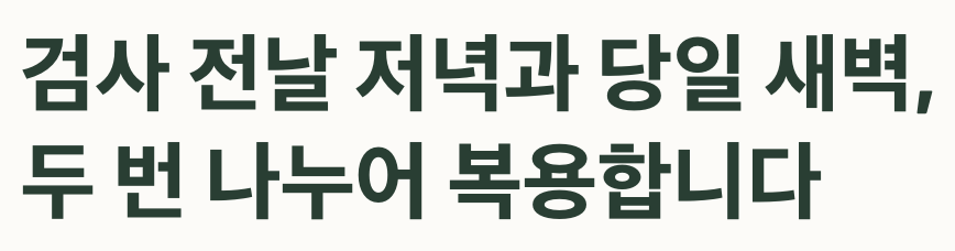 검사 전날 저녁과 당일 새벽, 두 번 나누어 복용합니다