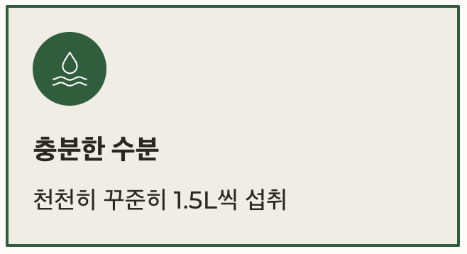 수분은 천천히, 꾸준히, 정해진 양을 맞춰 마셔야 합니다.