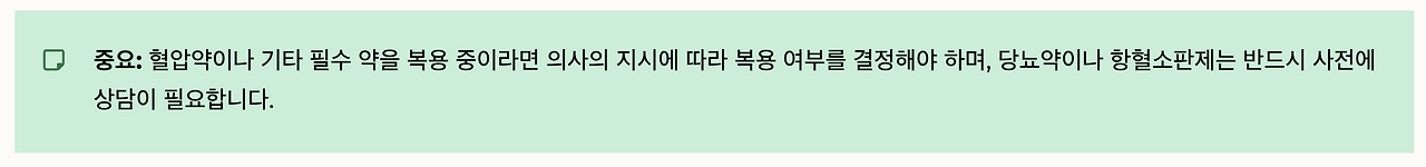 당뇨약이나 항혈소판제는 반드시 사전에 상담이 필요합니다.