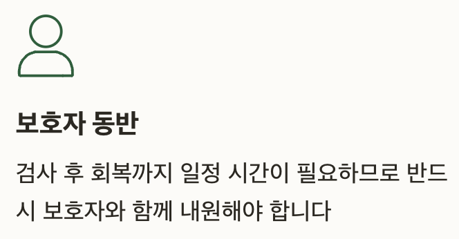 | 금식 시간 | 검사 2시간 전부터 완전 금식 |