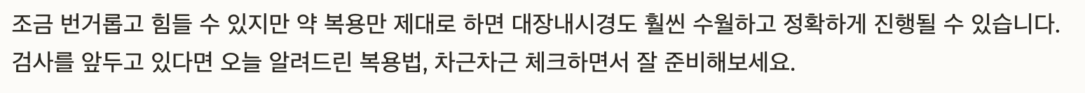 약 복용만 제대로 하면 대장내시경도 훨씬 수월하고 정확하게 진행될 수 있습니다.