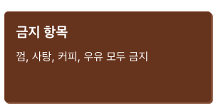 껌, 사탕, 커피, 우유도 모두 금지입니다.