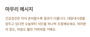 이 과정을 잘 지키면 장이 깨끗하게 비워져 검사도 수월하고, 재검 걱정도 줄어듭니다.