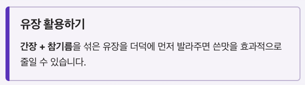 간장 + 참기름을 섞은 유장을 더덕에 먼저 발라주면 쓴맛을 줄일 수 있습니다.