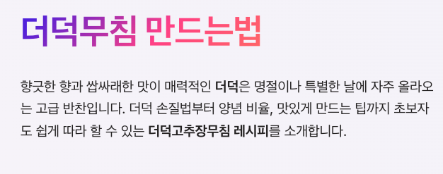 초보자도 쉽게 따라 할 수 있는 더덕고추장무침 레시피이니 집에서도 간단하게 만들어 보세요.