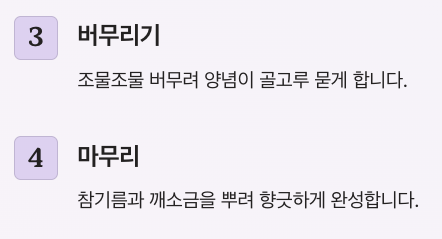 4️⃣ 마지막에 참기름과 깨소금을 뿌립니다.
