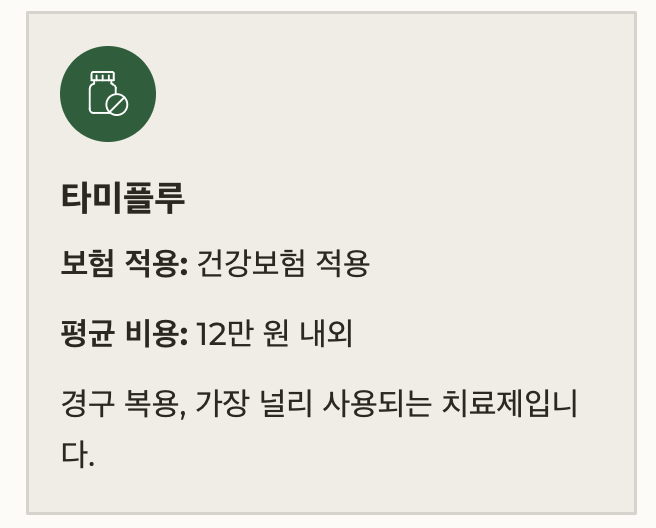 타미플루 건강보험 적용 1~2만 원 내외 경구 복용, 가장 널리 사용됨