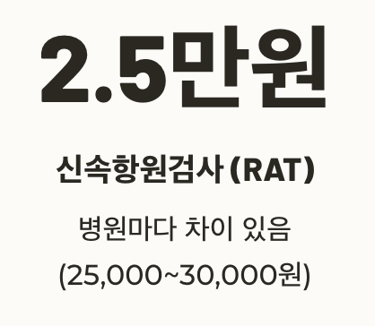 신속항원검사 (RAT) 25,000 ~ 30,000원 병원마다 차이 있음