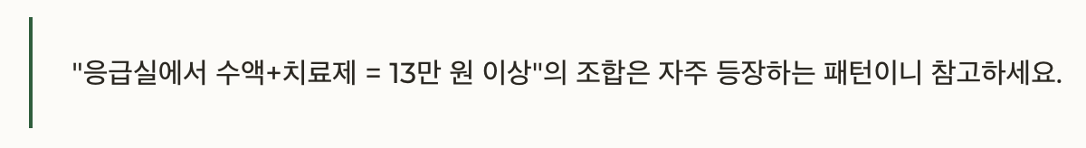 "응급실에서 수액+치료제 = 13만 원 이상"의 조합은