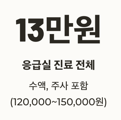 응급실 진료 전체 120,000 ~ 150,000원 수액, 주사 포함
