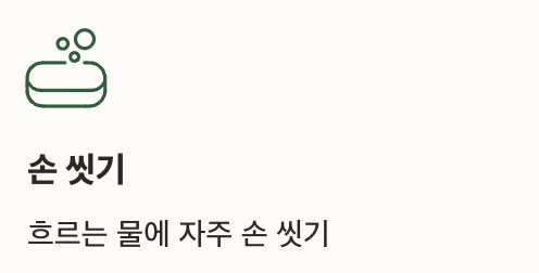 - 흐르는 물에 비누로 30초 이상 손 씻기