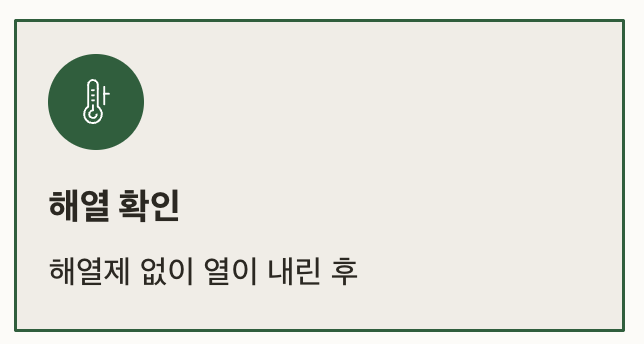 "해열제 없이 열이 내린 후, 최소 24시간 경과"