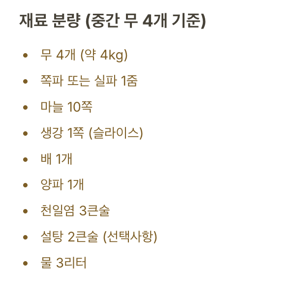 재료 분량 (기준: 중간 무 4개 기준)