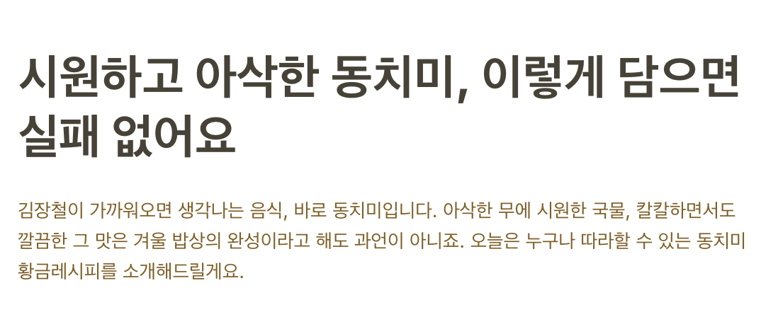 오늘은 누구나 따라할 수 있는 동치미 황금레시피를 소개해드릴게요.